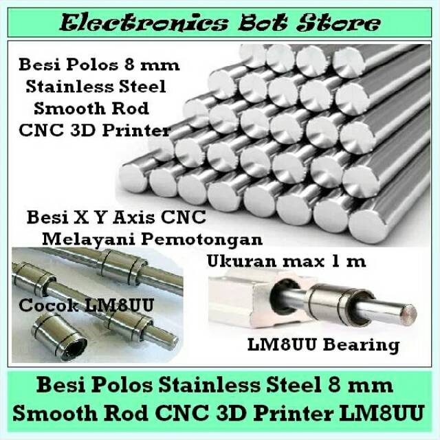 [EBS] Besi Polos 8mm As CNC 3D Printer Smooth Rod Harga 5 cm Mekanik Part Slider As Batang Stainless