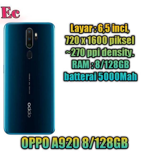 Produk OPPO A9 2020 (8/128-128GB) - OPPO A920 NEW - GRS RESMI OPPO INDONESIA- HIJAU, VANILA & UNGU ini harganya adalah Rp. 2.890.000,00 dan saat ini sedang Diskon sayang untuk dilewatkan!, Produk ini sendiri saat saya tulis Artikel ini sudah dilihat sebanyak 334 kali dan sudah disukai sebanyak 27 kali.