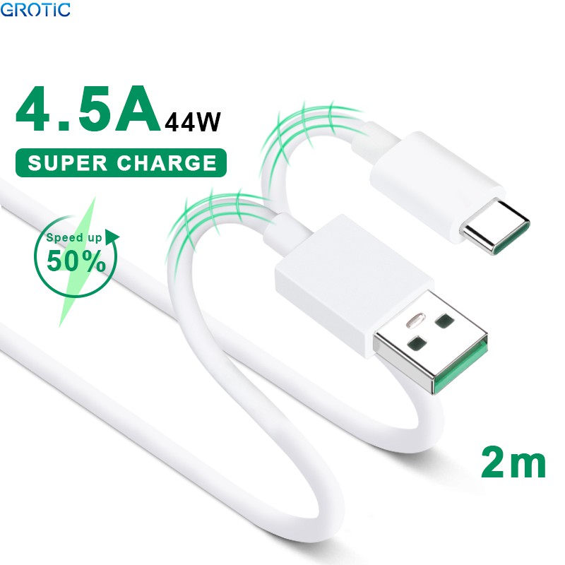 GROTIC Kabel Data Type-C 200cm Super Fast Charging 4.5A 44W untuk OPPO Xiaomi Huawei Phone