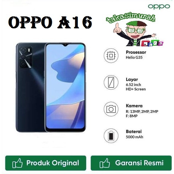 Produk Oppo A16 Ram 3/32gb Garansi Resmi Oppo Indonesia ini harganya adalah Rp. 1.820.000,00 dan saat ini sedang Diskon sayang untuk dilewatkan!, Produk ini sendiri saat saya tulis Artikel ini sudah dilihat sebanyak 2063 kali dan sudah disukai sebanyak 22 kali.