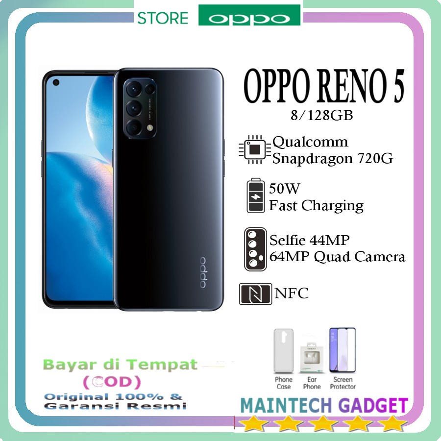 Oppo Reno 5 Ram 8 - 128 GB Snapdragon 720G - NFC - 64Megapixel - Resmi Reno5
