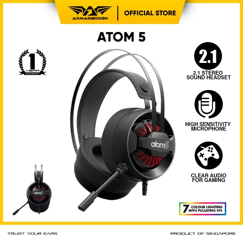 Alasan kenapa harus beli Armaggeddon 2.1 Headset Gaming Atom 5 [ 7 Colour Lightning ][ Cocok untuk HP/PC ] 1 Year Warranty sekarang