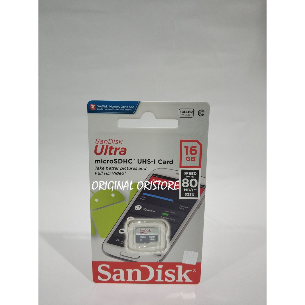 SanDisk Ultra Microsd UHS-1 16GB Up To 80MB/s class 10 - Micro sd 16GB 80mbps Tanpa Adapter