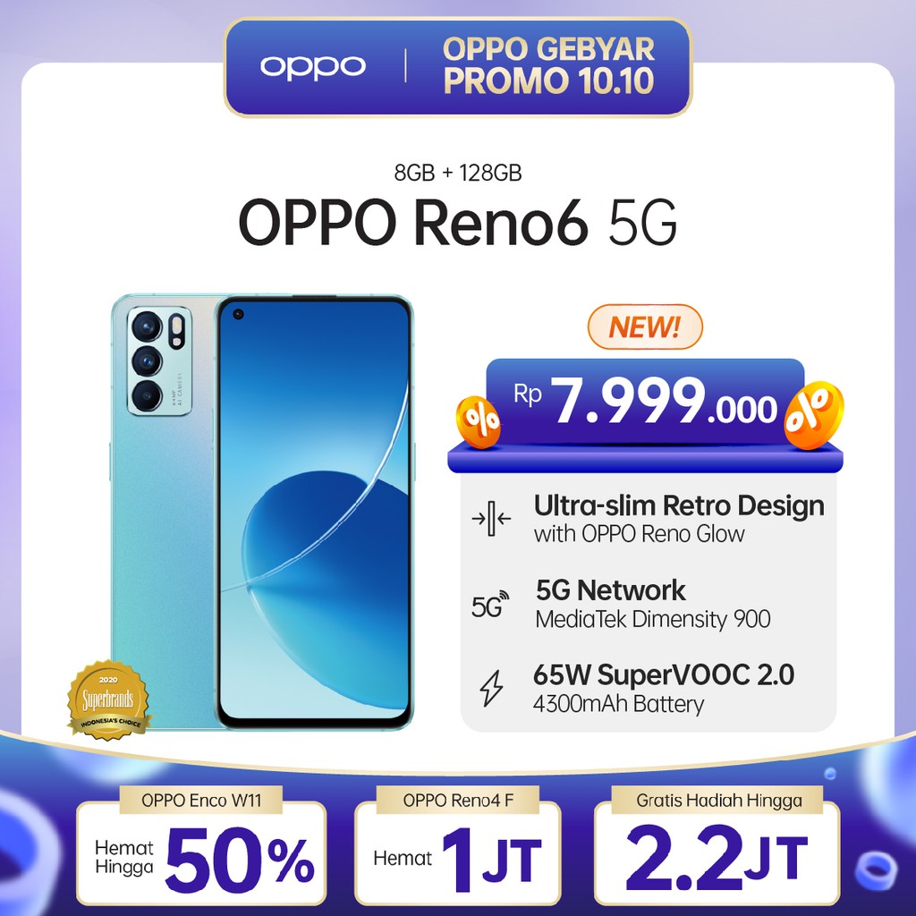 Produk OPPO Reno6 5G 8/128GB [5G Network, AI Highlight Video, 65W SuperVOOC 2.0] ini harganya adalah Rp. 7.999.000,00 dan saat ini sedang Diskon , Produk ini sendiri saat saya tulis Artikel ini sudah dilihat sebanyak 77555 kali dan sudah disukai sebanyak 2302 kali.