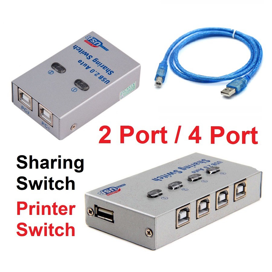 Auto Switch Usb Printer 2 Port 2Port 4 Port Sharing Switcher USB 2.0 Printer Kable Manual Otomatis