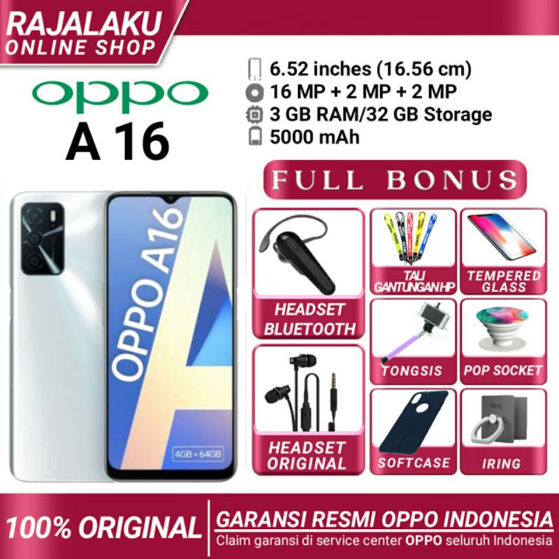 OPPO A16 3/32 & 4/64 RAM 4GB ROM 64GB GARANSI RESMI OPPO